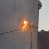 Vatandaşlar endişeyle yanan kabloları izlerken, bazıları cep telefonu kameralarıyla görüntü kaydetti.