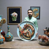 "Benzer çalışmaları Uzak Doğu sanatçılarından gördüm. Farklı sanat dallarını birleştirerek ortaya bir eser çıkarıyorum. Resim, şekillendirme, rölyef, çini ve seramik sanatlarını harmanlayarak çalışmalar yapıyorum. Eserlerin yapım aşaması büyüklüğüne ve özelliğine göre 1 ile 4 ay arasında sürüyor. Eserin önce çini ya da seramik çamurundan çarkta, tabak, vazo şeklinde altyapısı hazırlanıyor. Daha sonra yine aynı çamurdan hazırladığım 3 boyutlu heykeli tabak ve vazonun üstüne yerleştiriyorum ve bin 40 derecede fırınlıyorum. Dekor ve boyama işlemi yapıldıktan sonra sırlayarak yine bin 40 derecede fırınlıyorum. Daha sonra ürünümüz hazır hale geliyor."