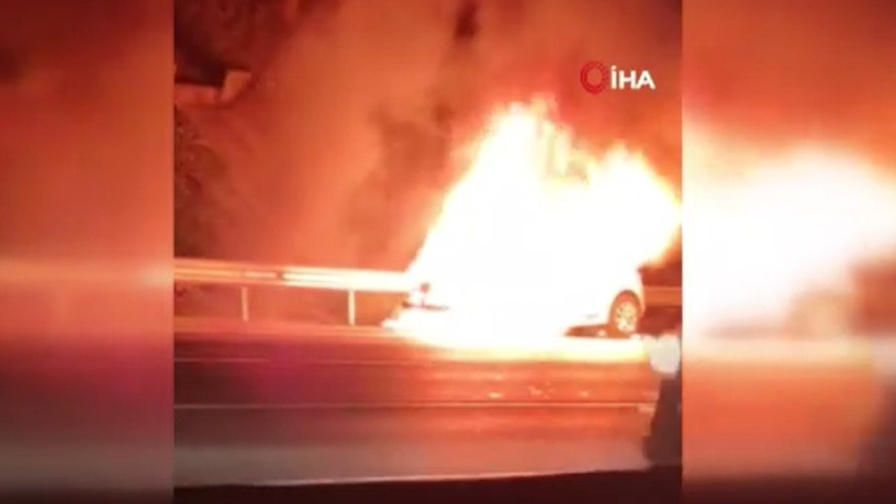 Görüntülerde, aracın alev alev yandığı görülüyor.