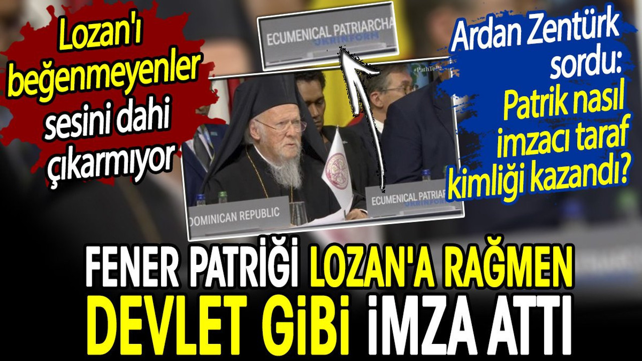 İsviçre’de düzenlenen ve Dışişleri Bakanlığı düzeyinde olan Ukrayna Konferansı’na Fener Rum Ortodoks Patrikhanesi’nin “ekümenik” sıfatıyla katıldığı ve Fener Patriği’nin bu sıfatla konuşma gerçekleştirdiği ortaya çıktı. Türkiye, söz konusu konferansta Dışişleri Bakanı tarafından temsil edilirken Patriğin, konferansa ekümenik sıfatıyla katılarak konuşma yapması ve masada bayrağının bulunması akıllara Lozan Anlaşması’nı getirdi.