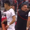 Elleriyle oyuncusunu boynundan tutan Brezilyalı teknik adam olaya tepki gösterdi.