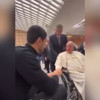 Enes Kanter’i tekerlekli sandalye üzerinde dinleyen Papa, hangi ülkeden olduğunu sordu, Türkiye yanıtını alınca gülümsedi.