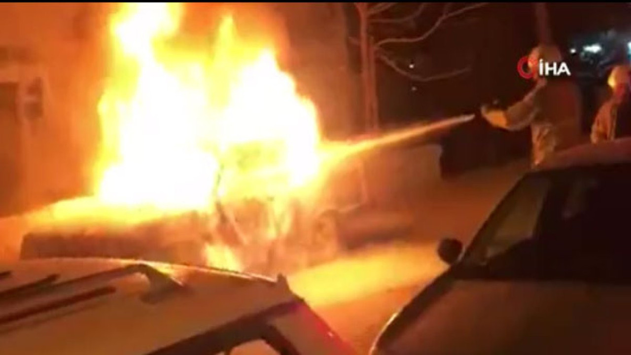 Yapılan incelemelerde, araçta çıkan yangının elektrik kablolarından kaynaklandığı öne sürüldü. Polis ekipleri yangına ilişkin inceleme başlattı.