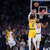 Madison Square Garden'daki müsabakada konuk ekip Pacers'ın yıldızı Tyrese Haliburton 31 sayı, 11 asistlik "double-double" ile takımının galibiyetinde başrolü oynarken takım arkadaşı Aaron Nesmith 30 sayılık katkı sundu.