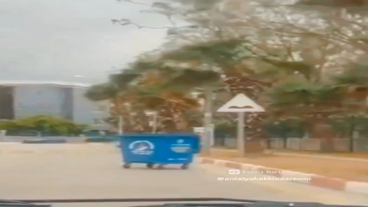 Bugün Türkiye'nin çoğu bölgesinde etkili olan fırtına, Antalya'da özellikle şiddetli bir hal aldı. Kent merkezi ve bazı ilçelerde sabah saatlerinden itibaren başlayan fırtına, rüzgarın hızının 118 kilometreye ulaşmasıyla dikkat çekti. Fırtına, özellikle Konyaaltı Sahili'nde bazı ağaçların devrilmesine, işletmelerdeki şemsiye ve tezgahların uçuşmasına neden oldu. Bununla birlikte, rüzgarın etkisiyle bir çöp konteyneri metrelerce sürüklendi. Bu olaylar bir sürücü tarafından kaydedildi.
