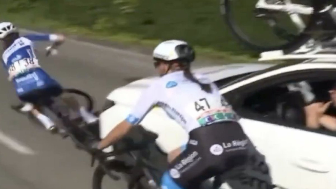 Fransa Bisiklet Turu'nda trajikomik bir kaza yaşandı. Görevli aracı kullanan bir yetkili, bisikletli yarışmacılardan biriyle konuşmayı uzatınca dikkati dağıldı ve önündeki diğer yarışmacıyı fark edemeyip çarptı. Bu beklenmedik kaza, yarışta büyük bir karışıklığa neden oldu ve birçok izleyicinin tepkisini çekti.