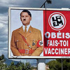 Michel-Ange Flori, 19 Temmuz''da Toulon ve Seyne-sur-Mer kentlerinde yol üzerinde yer alan reklam panolarına Cumhurbaşkanı Macron''un Hitler''e benzetildiği ve üzerinde "İtaat et, aşı ol!" sloganının yer aldığı afişler asmıştı.