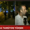 Muhabirin haberi aktardığı sırada, bir polis memuru kendisini Türkçe olarak 'Buradan çekilin' diyerek uyardı.