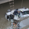 Minibüs yan şekilde batarken, Süleyman Aysan aracından çıkarak yardım bekledi.
