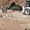 Divriği yakınlarındaki Kız Köprüsü'nde restorasyon çalışmaları sırasında tarihi yapının üzerine çıkan kepçe ile taşlar söküldü.