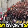 İsviçre'nin Bern şehrinde Wankdorf Stadı'nda oynanacak mücadele öncesi Sarı-Kırmızılı taraftarlar sokaklarda şov yapıyor.