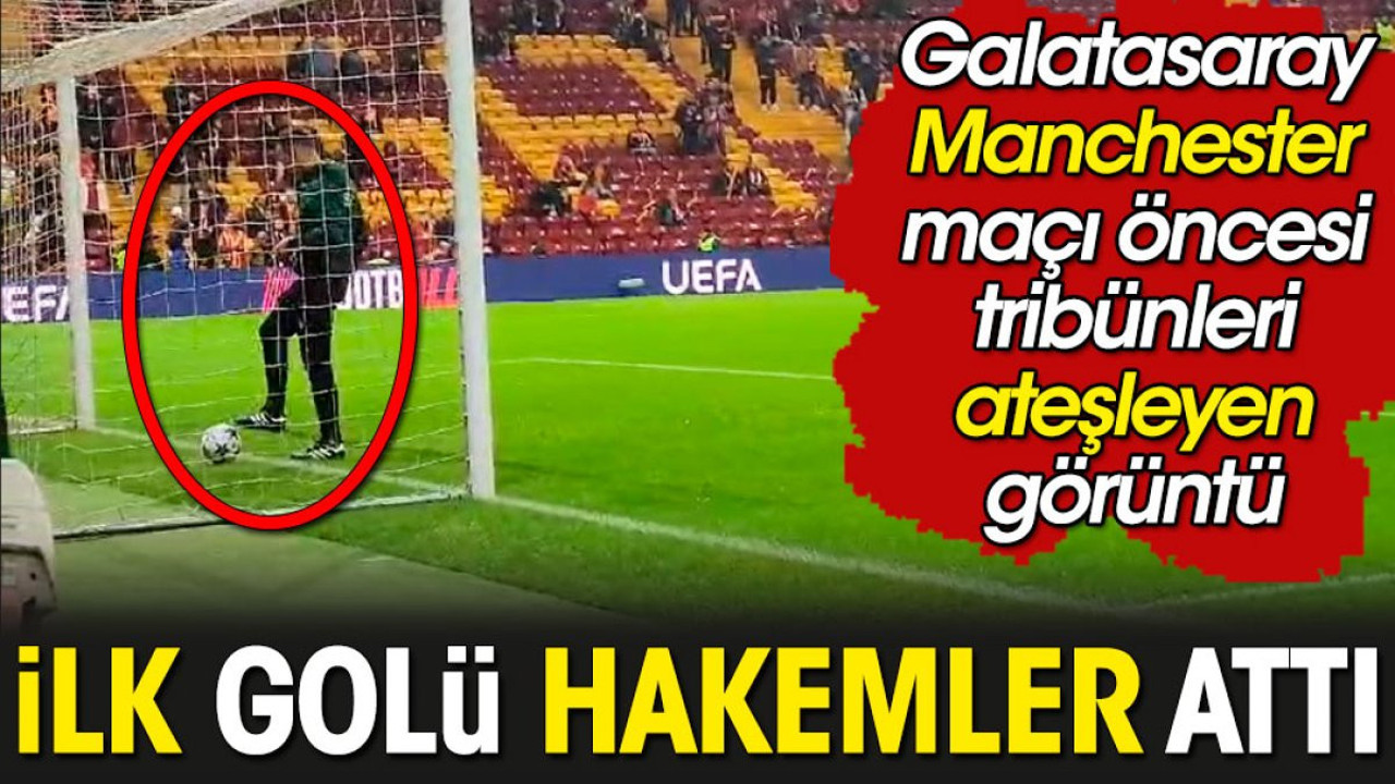 Galatasaray - Manchester United maçı öncesi hakem Jose Maria Sanchez ve ekibi saha kontrolü için çim zemine çıktı.