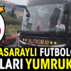 Futbolcuların otobüsün içinde camları yumrukladığı görüldü.