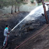 2 dönüm alandaki ağaçların zarar gördüğü yangının çıkış nedenin belirlenmesi için çalışma başlatıldı. (DHA)
