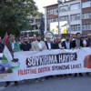 Fatih Parkı'nda toplanan kalabalık, "Katil ABD Ortadoğu'dan Defol" ve "Katil İsrail, Filistin'den Defol" yazılı pankartlarla yürüyerek İsrail aleyhine sloganlar attı.