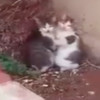 Gazze'deki çatışma ve bomba seslerinden korkan iki kedinin birbirine sarılarak duvar dibine sindiği görüntüler sosyal medyada gündem oldu