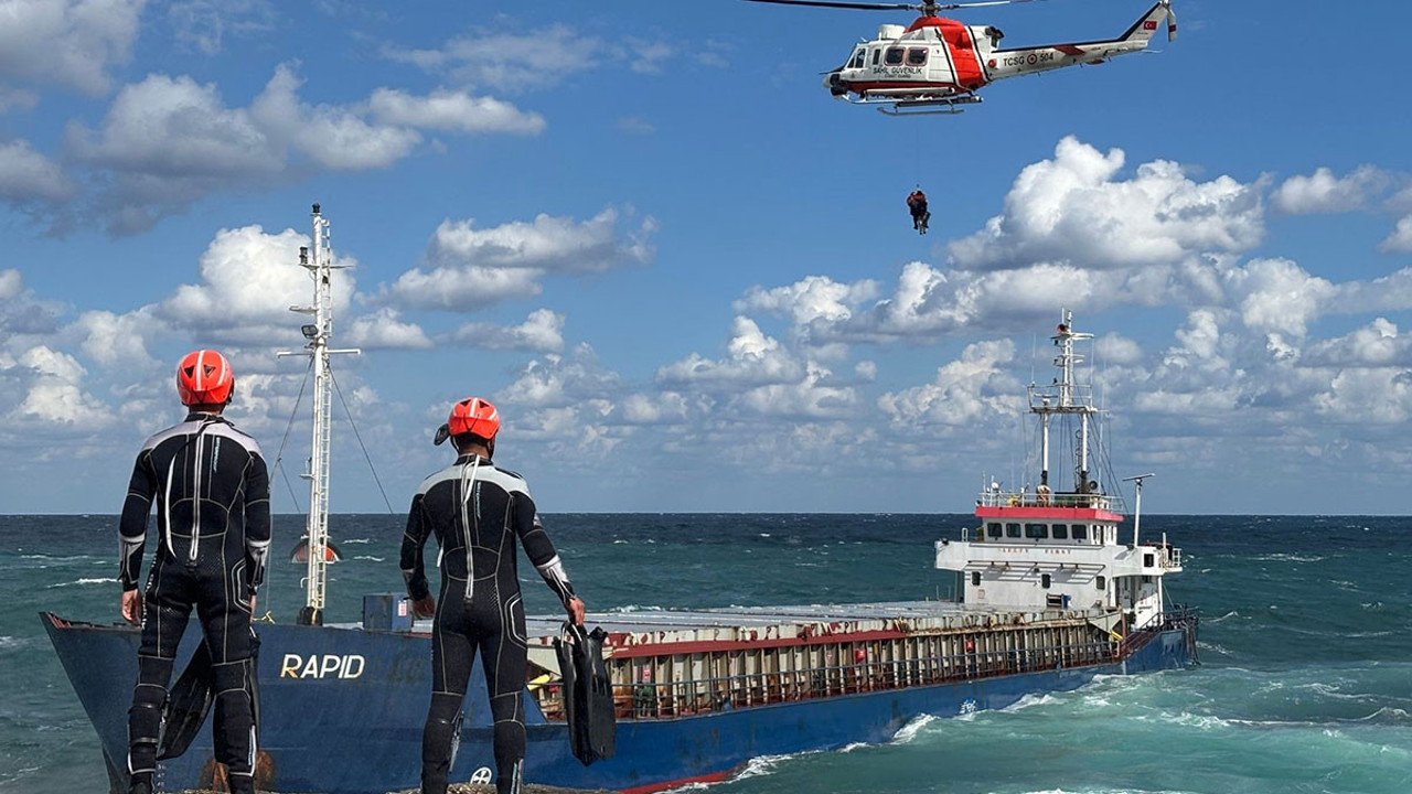 Kuru yük gemisi daha sonra kıyıdaki kayalık bölgede karaya oturdu. 7 kişilik mürettebatı bulunan geminin kurtarılması için ekiplerce çalışma yapıldı.