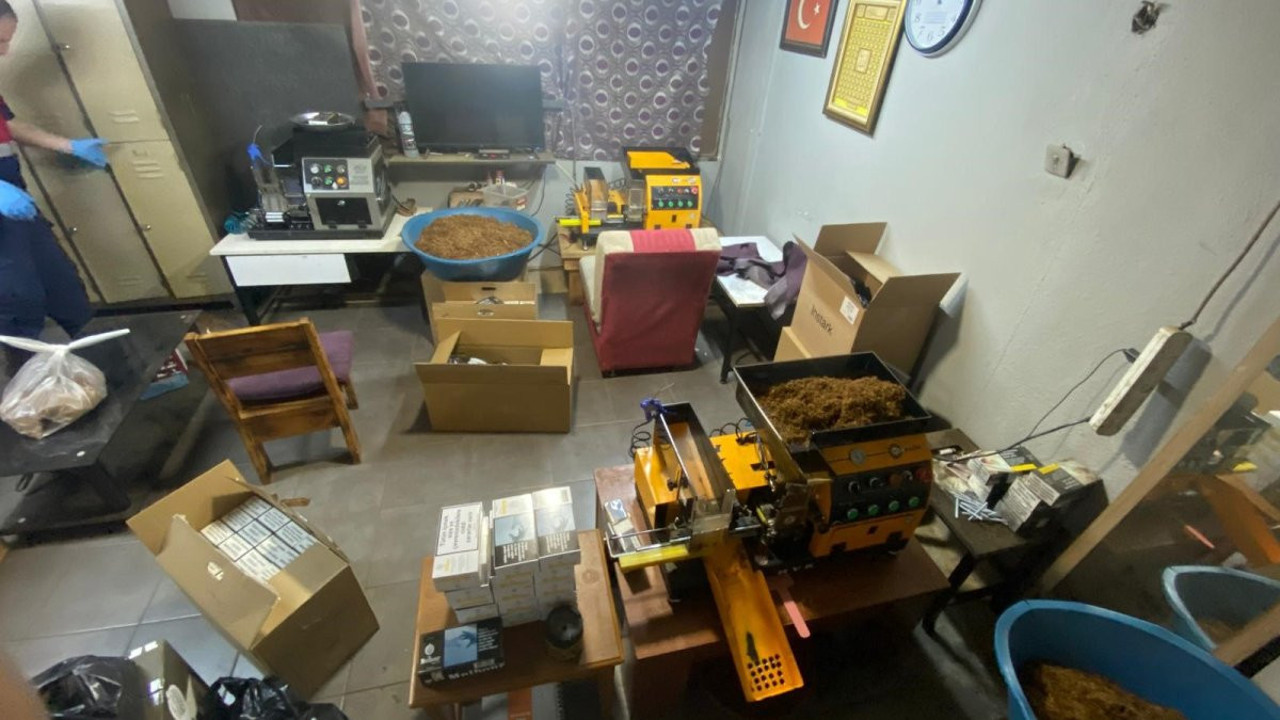 Yapılan operasyonda 80 bin adet tütün basılı sigara, 301 bin 400 adet makaron, 173 kilogram kıyılmış tütün, 47 bin 400 adet boş sigara kutusu, 4 bin 800 adet sigara filtresi, 10 adet elektronik sigara basma makinesi, 4 adet kompresör ve 2 adet hava makinesi ele geçirildi.
