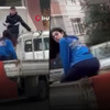 Kamyonet kasasındaki genç kızla birlikte devam etmeye çalışan hırsızlar bir süre sonra pes etti.