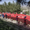 Burada çeşitli yaş gruplarındaki gönüllü gençler, 120 metre uzunluğundaki Türk bayrağı ile yürüyüş gerçekleştirdi.