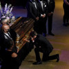 Salondaki kalabalık 8 dakika 46 saniye, ilahiler eşliğinde, siyahi Floyd için saygı duruşunda bulunurken, aile yakınları ve bazı davetliler duygulu anlar yaşadı.