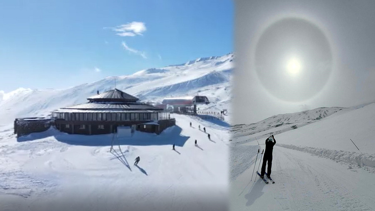 Güneşin etrafında beliren etkileyici ışık halkası olan "halo" Erciyes'te görüntülendi.