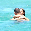 Eşini denizin içinde havaya atan Aslan'ın keyifli halleri objektiflere yansıdı. Arslan ile eşi daha sonra mekanın içine geçtiler.