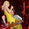 Şarkı aralarında seyircilerin arasında gezen sanatçı, bir erkek arkadaşına sarılarak kucağına çıktı.