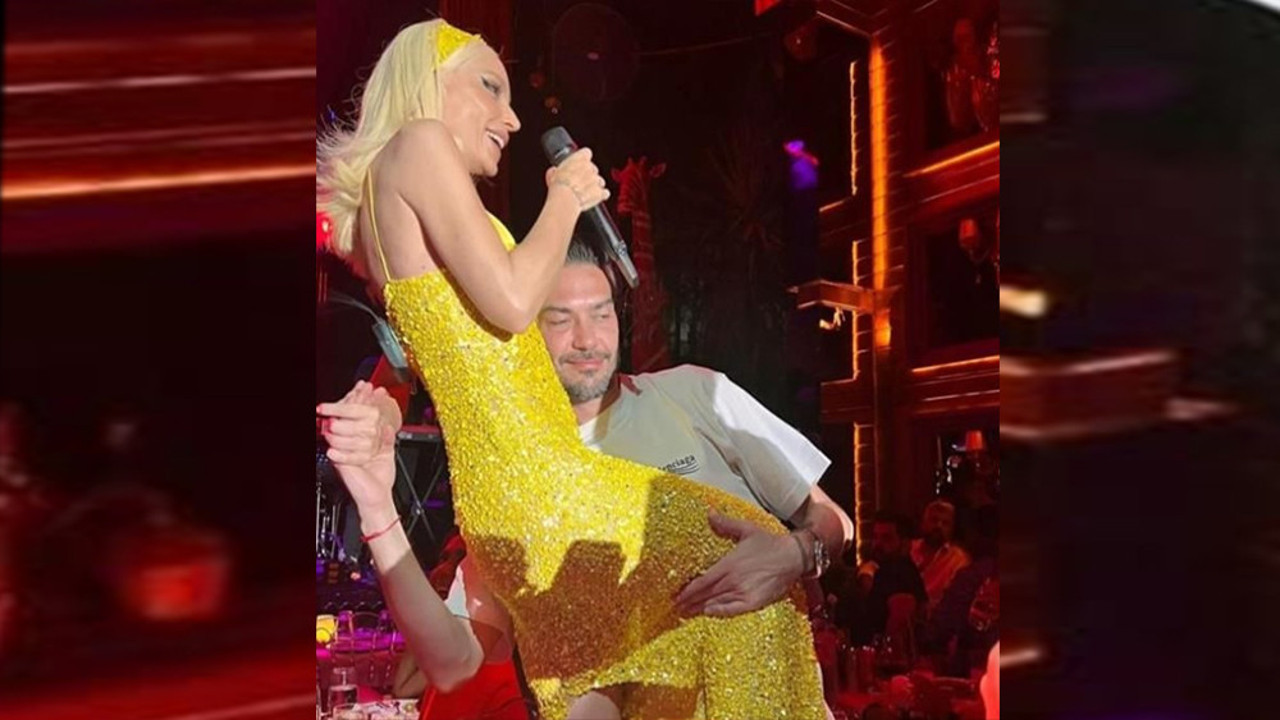 Sandalye üzerlerinde yürüyerek şarkılarını seslendiren Gülşen, kendisini dinlemeye gelen Edis'i de sahneye çıkardı.