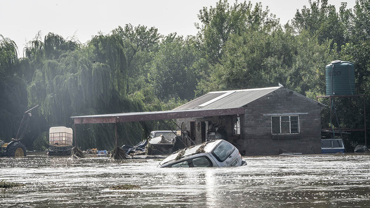 Vanderbijlpark kenti yakınlarındaki Lochvaal bölgesinde birçok evin ve otomobilin sular altında kaldığı fotoğraflara yansıdı.