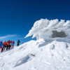 Dağcılar, zirvede bulunan taş barınağın buzla kaplandığını görerek fotoğrafladı.