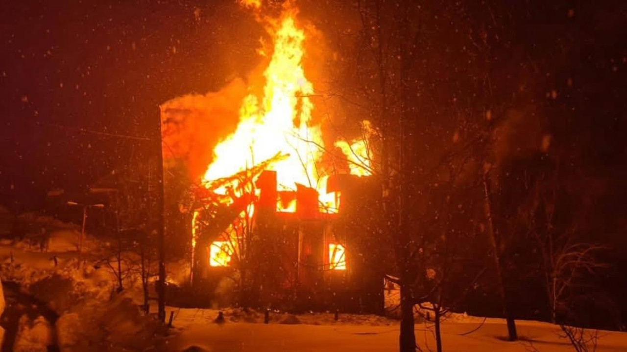 Çıkış nedeni henüz belirlenemeyen yangına yerel ekipler ve vatandaşlar müdahale ederken alevlerin hızla yayıldığı cami tamamen yandı.