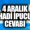 Türkiye'nin ilk canlı bilgi yarışması 4 Aralık tarihli Hadi ipucu cevabı belli oldu. Hadi Instagram hesabından, Pop Mevsimi listesinin 4. şarkısını not etmeyi sakın unutma dedi. Hadi bu akşam yayınlanacak olan yarışması Müzik Gecesi konseptiyle takipçilerinin karşısına çıkacak. Saat 20.30'da başlayacak olan yarışmada 12 soruyu bilen yarışmacılar 30.000 TL değerindeki ödülü kazananlar arasında bölüştürecek.