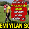 Bir kişi, sahaya giren yılanı sırt çantası ile vurarak sahadan çıkarmaya çalışsa da başarılı olamadı.