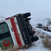 Van merkeze hasta getirilenHakkari Acil Sağlık Hizmetleri'ne ait 30 AB 246 plakalı ambulans, dönüş yolundabuzlanma nedeniyle sürücüsünün kontrolünden çıkarak, yol kenarına devrildi.