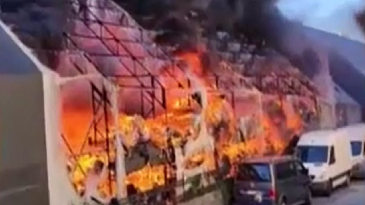 Halı sahanın üst kısmında bulunan çadırlardan yükselen alevler yan tarafta bulunan iş hanına sıçradı. İş hanı içerisinde bulunan ve ayakkabı ve kumaş deposundan yükselen alevlere itfaiye ekipleri müdahale etti. Ekiplerin yaptıkları çalışma sonrası yangın kontrol altına alındı.