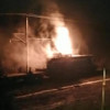 Görüntülerde, trenden yükselen alevlerin elektrik tellerine sıçradığı görülüyor.