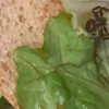Marulunu düzeltmek için ekmeğini kaldırdığı hamburgerin ortasında ölü bir örümcek gördü.
