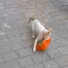 Bir vatandaş sokakta ağzında tavuk paketi ile dolaşan kediyi görünce telefona sarıldı.