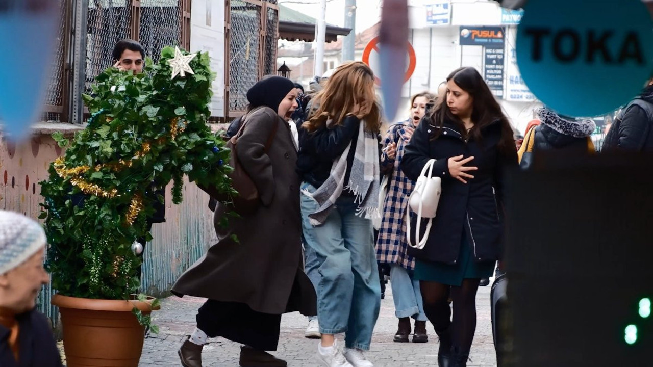 Hareketsiz bir şekilde bekleyen yılbaşı ağacının yanından geçenler, bir anda hareket eden ağacı görünce ne yapacağını şaşırdı. Ne olduğunu anlamadan çığlık atıp kaçanlar sonrasında kahkahaya boğuldu.