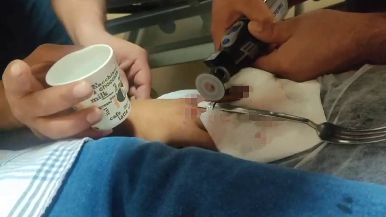 Vatandaşın yüzüğüne sıkışan yüzük, itfaiye ekipleri tarafından kesilerek çıkartıldı. Yüzüğün çıkarılmasıyla yaralı vatandaşa müdahale edildi.