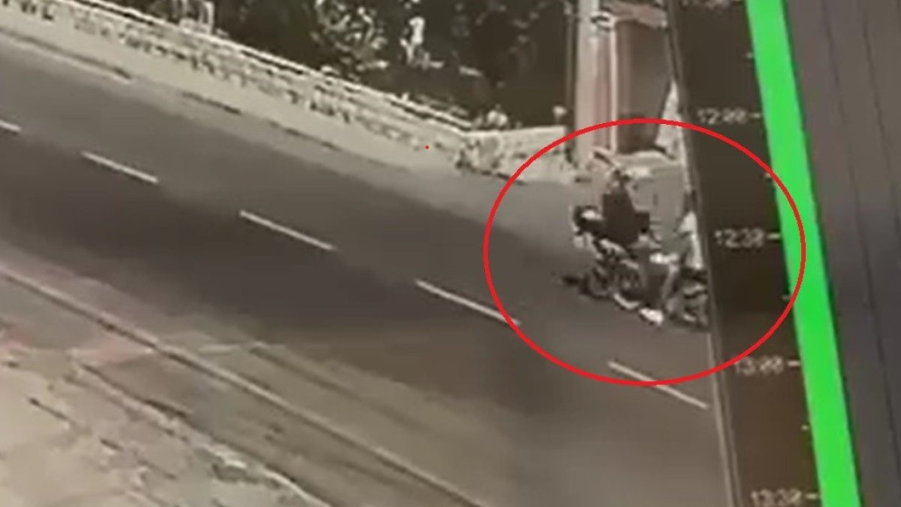 Yaralanan 2 motosiklet sürücüsünün kazayı kıl payı atlattığı o anlar bir işyerinin güvenlik kamerasına yansıdı.