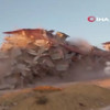 Kahramanmaraş merkezli depremlerde ağır hasar alan Hatay'da mahkeme süreci sona eren binaların yıkım ve enkaz kaldırma çalışmaları aralıksız sürüyor. Antakya ilçesi Saraycık Mahallesi'nde bulunan 8 katlı bina, iş makinesinin darbesiyle kontrollü olarak yıkıldı.
