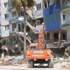 Binalar, iş makineleriyle kontrollü şekilde yıkıldı.