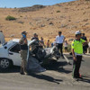 Aynı istikamette ilerleyen 06 EAY 260 plakalı beton mikseri ile çarpışan otomobilde sıkışan 2 kişi, itfaiye ekipleri tarafından araçtan çıkarıldı.