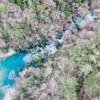 Depremlerin meydana geldiği 6 Şubat''tan bu yana biriken su, burada ağaçların arasında turkuaz mavisi bir gölete dönüştü.