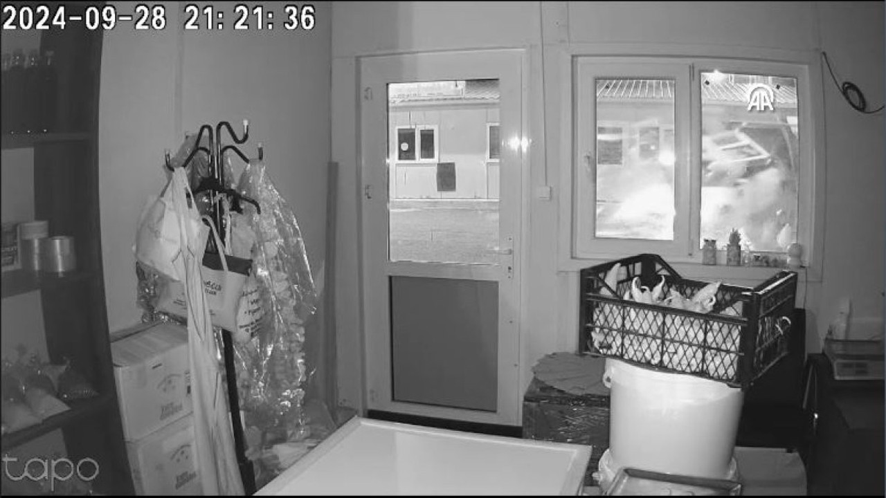 Kaza anı, bölgedeki başka bir prefabrik iş yerinin güvenlik kamerasınca kaydedildi.