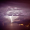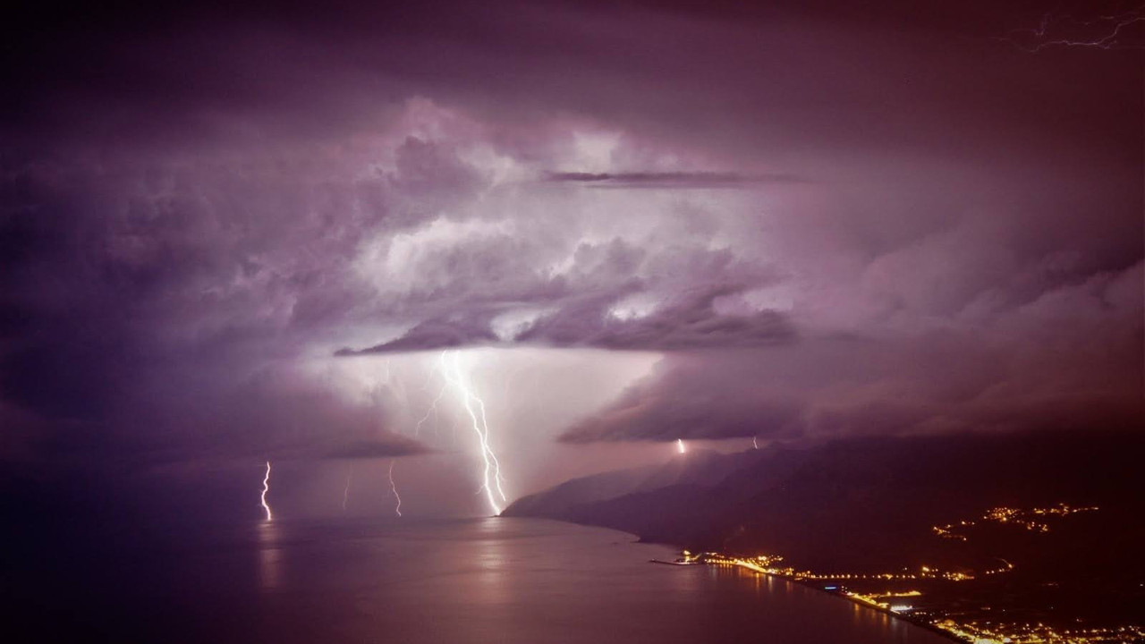 Kentin üzerinde birbiri ardına çakan şimşekler geceyi aydınlatırken görsel şölen oluşturdu.
