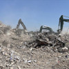 Yıkım ve kırma işlemlerinin ardından kepçelerle kamyonlara doldurulan molozlar, belirlenen döküm sahalarına götürülüyor.