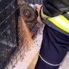 İhbarla olay yerine gelen ekipler boşlukta sıkışan kediyi, demir çitleri keserek çıkardı.